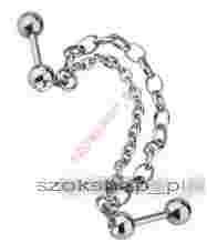 Przedmiotem aukcji jest kolczyk do ucha sztanga zakończona kuleczką z kryształkiem i połączona łańcuszkiem z drugą sztangą. Kolczyk może być noszony w górnej dziurce w uchu lub innych miejscach (np tragus).