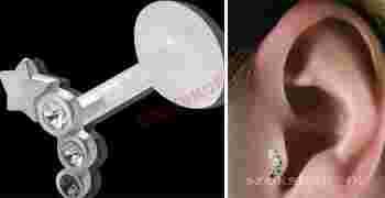 Przedmiotem aukcji jest kolczyk do tragusa typu push in (na docisk) z białymi kryształkami