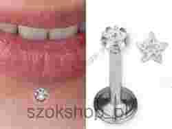 Przedmiotem aukcji jest kolczyk do wargi na z gwintem wewnętrznym z wkręcaną ozdobą (biała kryształowa gwiazdka).
