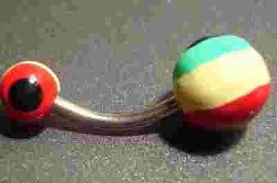 Kolczyk kolczyki do pępka, piercing RASTA REGGAE