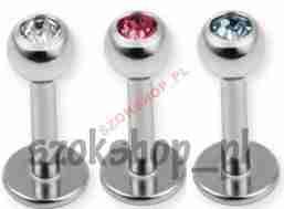 KOLCZYK LABRET Z KULKĄ Z KRYSZTAŁKIEM 1.2/8/4mm