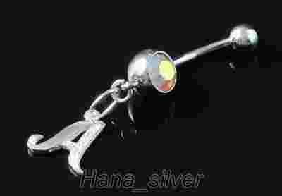 Kolczyk pępek stal 316 L + literka srebro 0,925