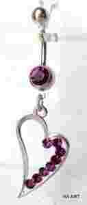 Przedmiotem sprzedaży jest kolczyk do pępka serce, zdobiony fioletowymi cyrkoniami . Długość banana 10 mm. Wielkość serca 32mm/ 18 mm. Wielkość kulek 5 i 8 mm. Kolczyk jest wykonany ze stali chirurgicznej 316 L. Prezentuje się ślicznie, jeszcze ładniej niż na zdjęciu.