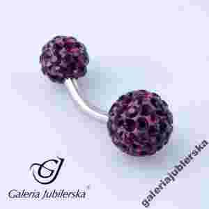Niezwykły kolczyk do pępka wykonany ze srebra próby 925. Na obu końcach pręta znajdują się kuleczki wysadzane najpiękniejszymi, mieniącymi się fiołkowymi kamieniami Swarovskiego. Kolczyk wspaniale się prezentuje i doskonale pasuje na prezent. Długość pręta to 11,50mm a grubość 1,73mm. Mniejsza z kuleczek ma szerokość 6,00mm, a większa 8,60mm. Długość całego kolczyka to 23,50mm, a waga to zaledwie 1,00g. Tylko u nas dostępny w tak niskiej cenie.