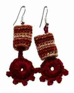 Wykonane z bawełnianego kordonka w kolorze bordowym i cieniowanego brązu na posrebrzanych biglach. Kształt nieoczywisty i pasujący do luźnego stylu etno w sam raz na lato i wakacje.