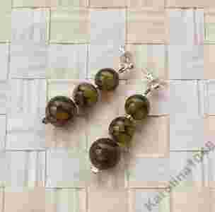 KOLCZYKI AGAT ŻÓŁTO ZIELONY MATRIX KULE SREBRO