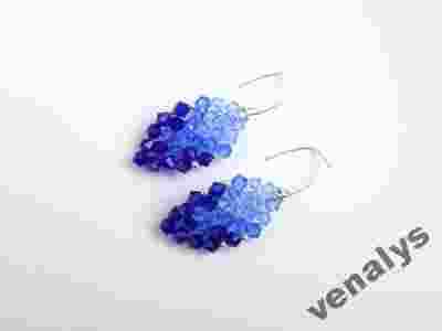 KOLCZYKI BŁĘKITNE LISTKI KORALIKI BICONE