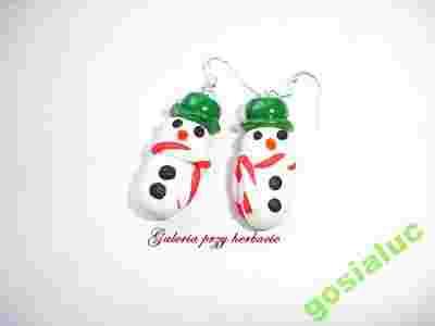 Kolczyki bałwanki, modelina fimo i srebro