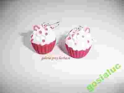 Kolczyki babeczki malinowe modelina fimo srebro