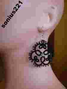 Kolczyki czarne śr.5 cm-frywolitka.