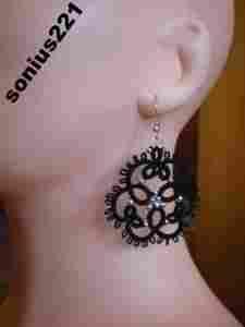 Kolczyki czarne śr.5 cm-frywolitka.