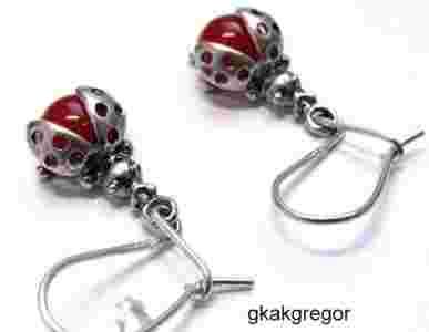 KOLCZYKI CZERWONE BIEDRONECZKI SREBRNE