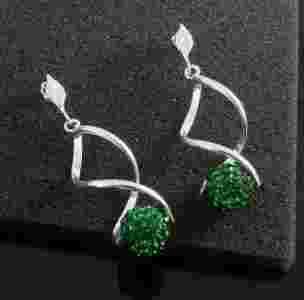 Kolczyki Długie Srebro KRĘCIOŁKI Swarovski EMERALD