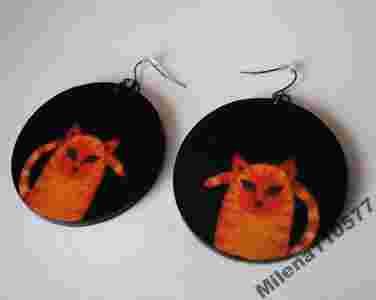 Kolczyki Decoupage Kot Czerwone Koty