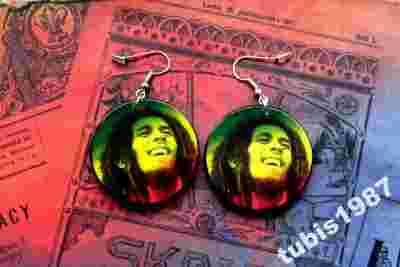 kolczyki DECOUPAGE reggae BOB MARLEY rasta 18-tka