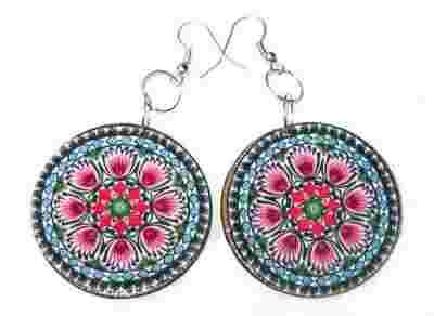 KOLCZYKI DECOUPAGE wzór 7- LUDOWE- DREWNO