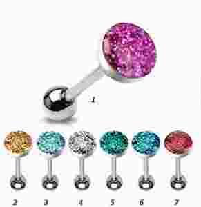 KOLCZYKI DO JĘZYKA z brokatem STAL CHIR.