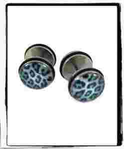 Kolczyki, fake plug, w panterkę. punk, rock, emo