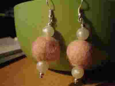 Kolczyki filc + perełki róż