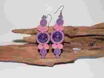 Kolczyki fiolet z różem sutasz dwustronne