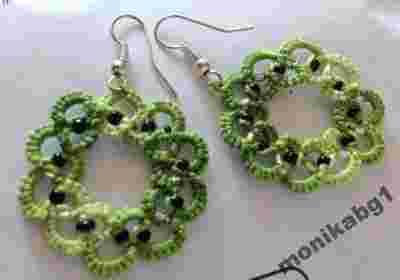 Kolczyki Frywolitki Zielone kółeczka