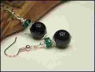 Kolczyki Hand Made Kule Kryształ Zieleń Chryzokola