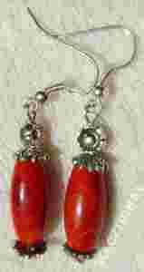 Przedmiotem aukcji są kolczyki z koralikiem o ciepłej pomarańczowej barwie. Bigle posrebrzane, baranki silikonowe w komplecie z kolczykami. Długość całkowita ok.4,9cm. Kolczyki są bardzo lekkie.