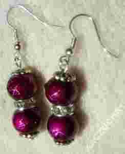 Przedmiotem aukcji są kolczyki z koralików spectra (10mm największy) z dotatkiem przekładek z kryształkami, jak na zdjęciu. Bigle posrebrzane, baranki silikonowe w komplecie z kolczykami. Długość całkowita ok.4,7cm.