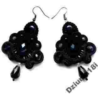 KOLCZYKI HAND MADE! SUTASZ_JEDWAB_CZARNO_GRANATOWE
