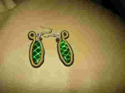kolczyki hand made- sutasz, zielone ocza