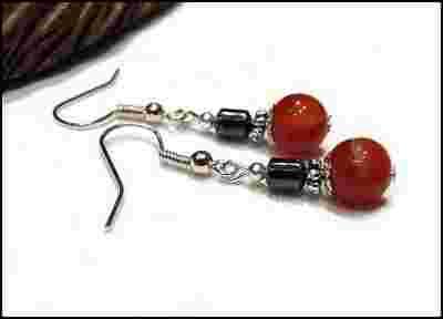Kolczyki Handmade Hematyt Agat Czerwony Wyprzedaż