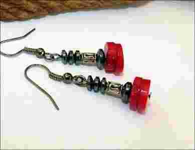 Kolczyki Handmade Koral Czerwony Hematyt