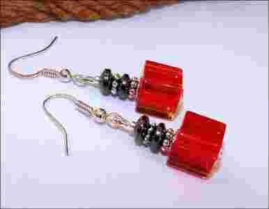 Kolczyki Handmade Kostki Czerwone Hematyt