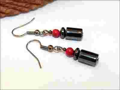 Kolczyki Handmade Kulki Hematyt Howlit Czerwony