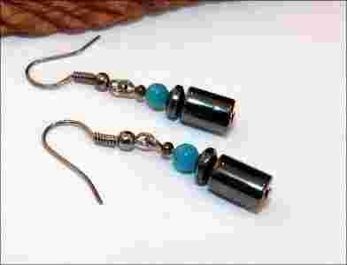 Kolczyki Handmade Kulki Hematyt Marmur Niebieski
