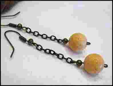 Kolczyki HandMade Stare Złoto Łańcuszki Koral
