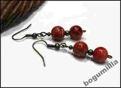 Kolczyki HandMade Stare Złoto Koral Czerwony