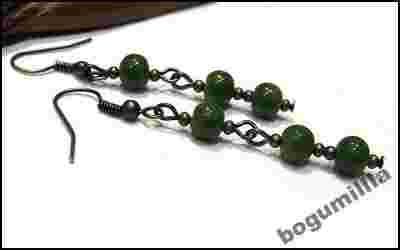 Kolczyki HandMade Stare Złoto Kulki Zielone