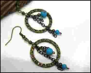 Kolczyki HandMade Stare Złoto Turkus Oryginalne