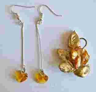 Przedmiotem aukcji są ręcznie wykonane kolczyki i wisiorek.