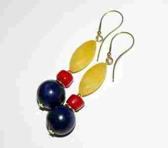 Kolczyki JADEIT KORAL LAPIS srebro złocone 24k
