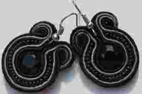 Kolczyki jedwabne, sutasz, czarne
