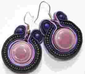 Kolczyki jedwabne, sutasz, lawendowe