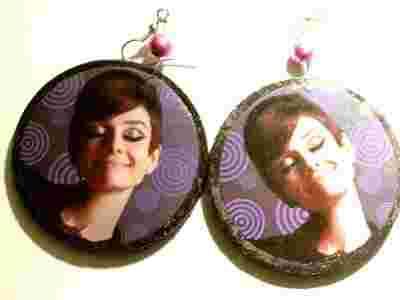 kolczyki klipsy 5 cm decoupage Audrey Hepburn