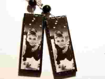 kolczyki klipsy decoupage Audrey Hepburn