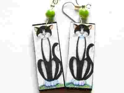 kolczyki klipsy decoupage koty kotki