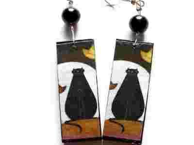 kolczyki klipsy decoupage koty kotki