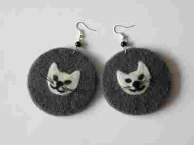 Kolczyki koła filcowane na sucho - kotki. Duże.