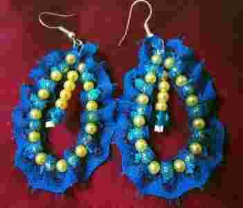 Kolczyki koronkowe turkusowo-żółte