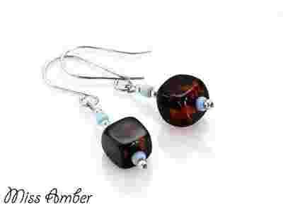 Kolczyki KOSTKI ~ BURSZTYN BAŁTYCKI WIŚNIA